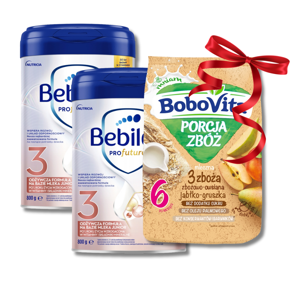 Bebilon 3 2x800g + kaszka GRATIS zbożowo-owsiana jabłko-gruszka BoboVita