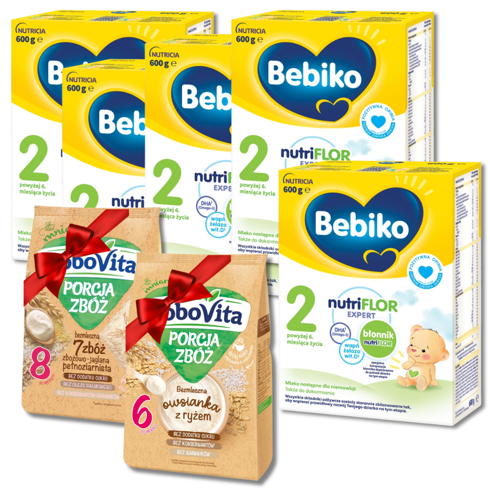 Mleko BEBIKO 2 5x600g + 2 kaszki GRATIS 170g
